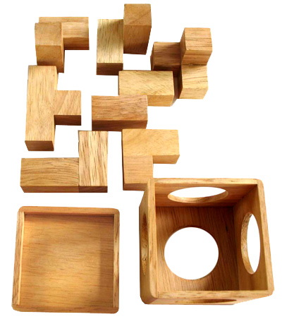 2.เป็นชิ้นไม้ 7 ชิ้น ลักษณะรูปร่างแบบต่างๆ เช่น รูปตัว L รูปตัว T และ S อื่นๆ