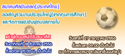 ขอเรียนเชิญสมาชิกสมาคมฯทุกท่านร่วมงานประชุมวิสามัญประจำปี 2555 และร่วมทำบุญสมาคมฯ วันอาทิตย์ที่ 7 ตุลาคม 2555 ณ ที่ทำการสมาคมฯ(ใหม่)